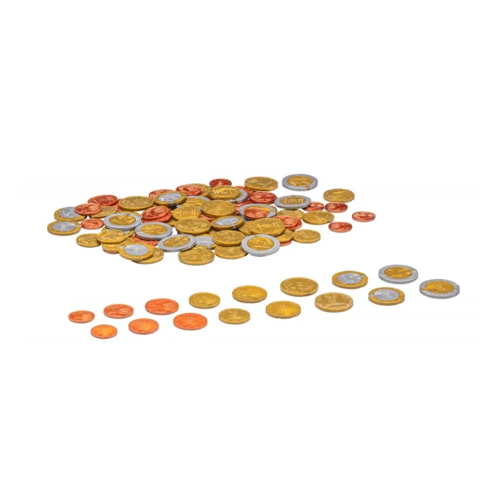 Σετ 80 εκπαιδευτικών νομισμάτων ευρώ από RE-Plastic® σε φυσικό μέγεθος.