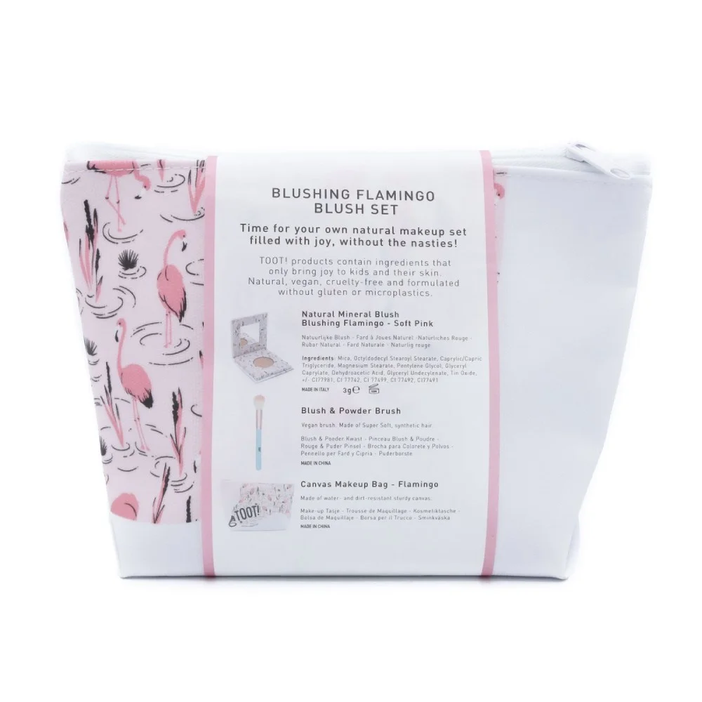 Παιδικό σετ μακιγιάζ TOOT! με φυσικό ρουζ Flamingo, καθρέφτη, πινέλο και τσαντάκι.