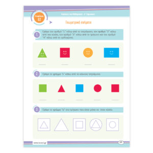 Βιβλίο φύλλων εργασίας Μαθηματικών με συμπληρωματικές ασκήσεις, επαναληπτικά τεστ με συνοπτική θεωρία, εύστοχα παραδείγματα, μικρές συμβουλές και ελκυστικά γραφικά.
