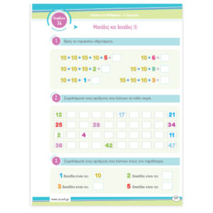 Βιβλίο φύλλων εργασίας Μαθηματικών με συμπληρωματικές ασκήσεις, επαναληπτικά τεστ με συνοπτική θεωρία, εύστοχα παραδείγματα, μικρές συμβουλές και ελκυστικά γραφικά.