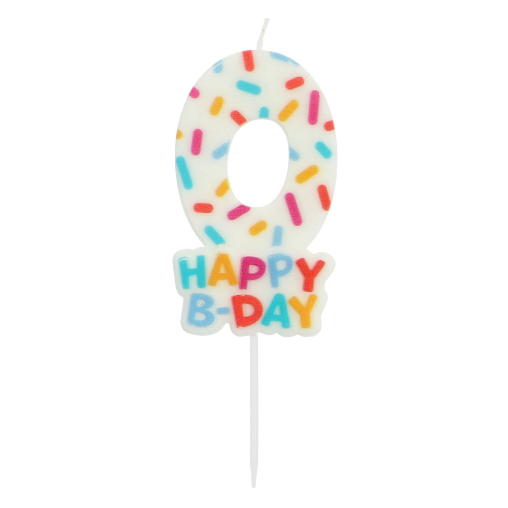 Πολύχρωμο κεράκι γενεθλίων Cozy Sprinkles με αριθμό 0, ύψος 7cm (11cm με στικ).