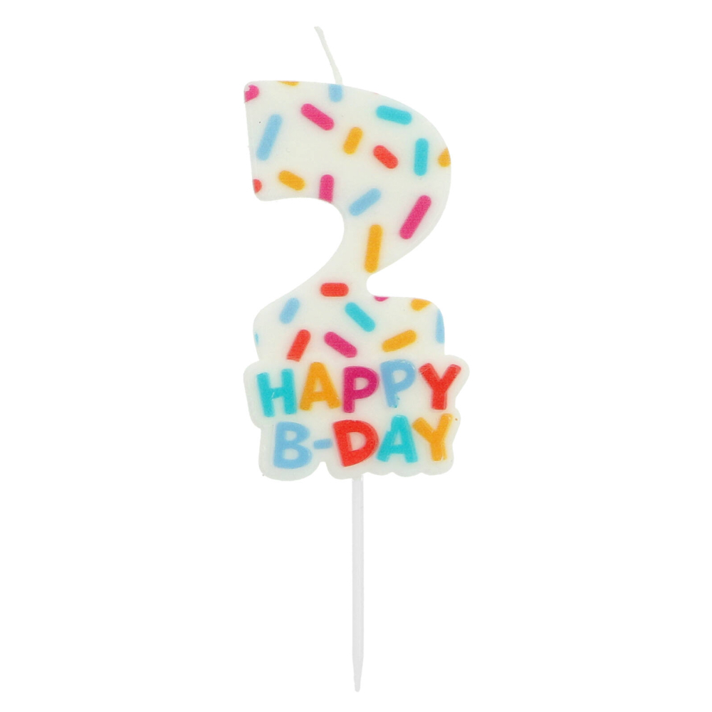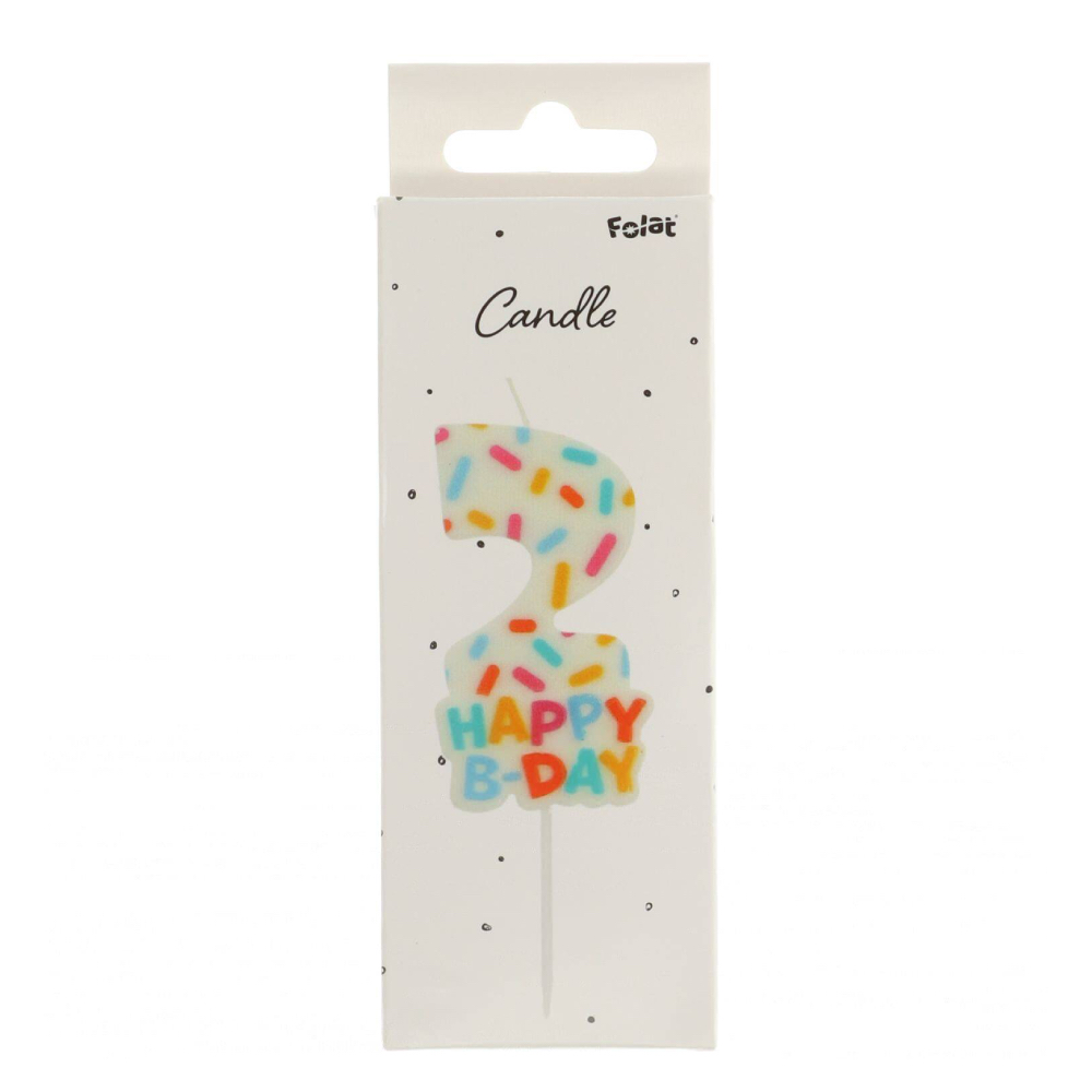Πολύχρωμο κεράκι γενεθλίων Cozy Sprinkles με αριθμό 2, ύψος 7cm (11cm με στικ).