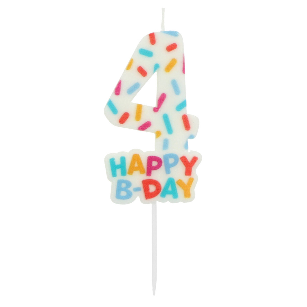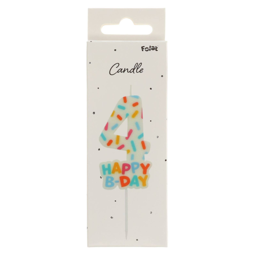 Πολύχρωμο κεράκι γενεθλίων Cozy Sprinkles με αριθμό 4, ύψος 7cm (11cm με στικ).