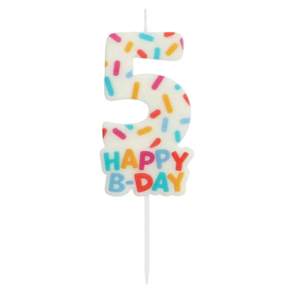 Πολύχρωμο κεράκι γενεθλίων Cozy Sprinkles με αριθμό 5, ύψος 7cm (11cm με στικ).
