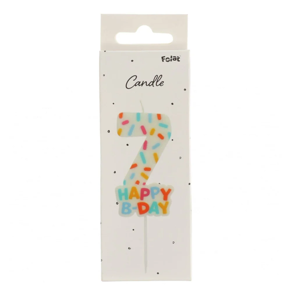 Πολύχρωμο κεράκι γενεθλίων Cozy Sprinkles με αριθμό 7, ύψος 7cm (11cm με στικ).