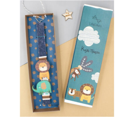 Πασχαλινή λαμπάδα με ξύλινη καμηλοπάρδαλη και χάρακα