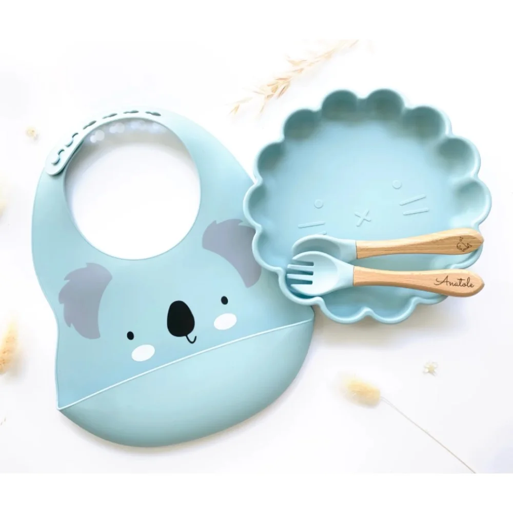 Les Petits Citrons Βρεφικό Σετ Γεύματος Koala | Σετ Σιλικόνης με Πιάτο, Κουτάλι, Πιρούνι & Σαλιάρα
