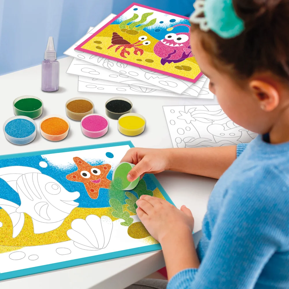 Ρίξε χρωματιστή άμμο πάνω σε ειδικά αυτοκόλλητα φύλλα και δημιούργησε μοναδικές εικόνες με υφή και χρώμα!