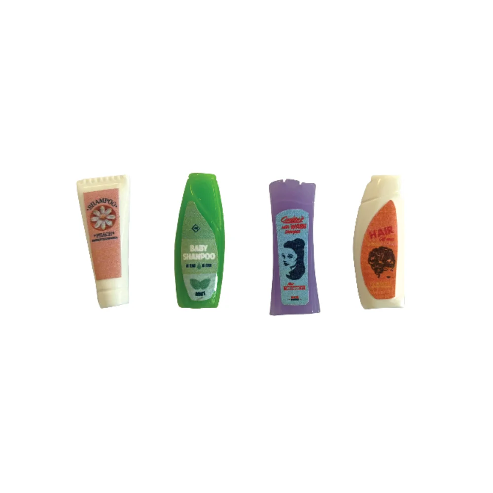 Ρεαλιστικά μπουκαλάκια σαμπουάν μινιατούρες με αυτοκόλλητες ετικέτες, τέλεια για κουκλόσπιτα & συλλογές.