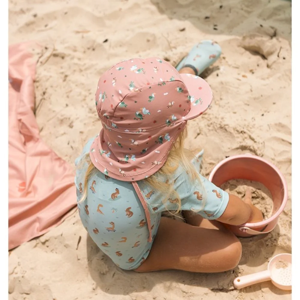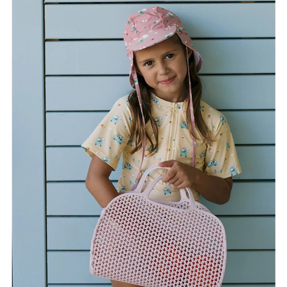 Καπέλο παραλίας Monnëka Strawberries με UV προστασία 50+, κορδόνια και κάλυψη αυχένα.