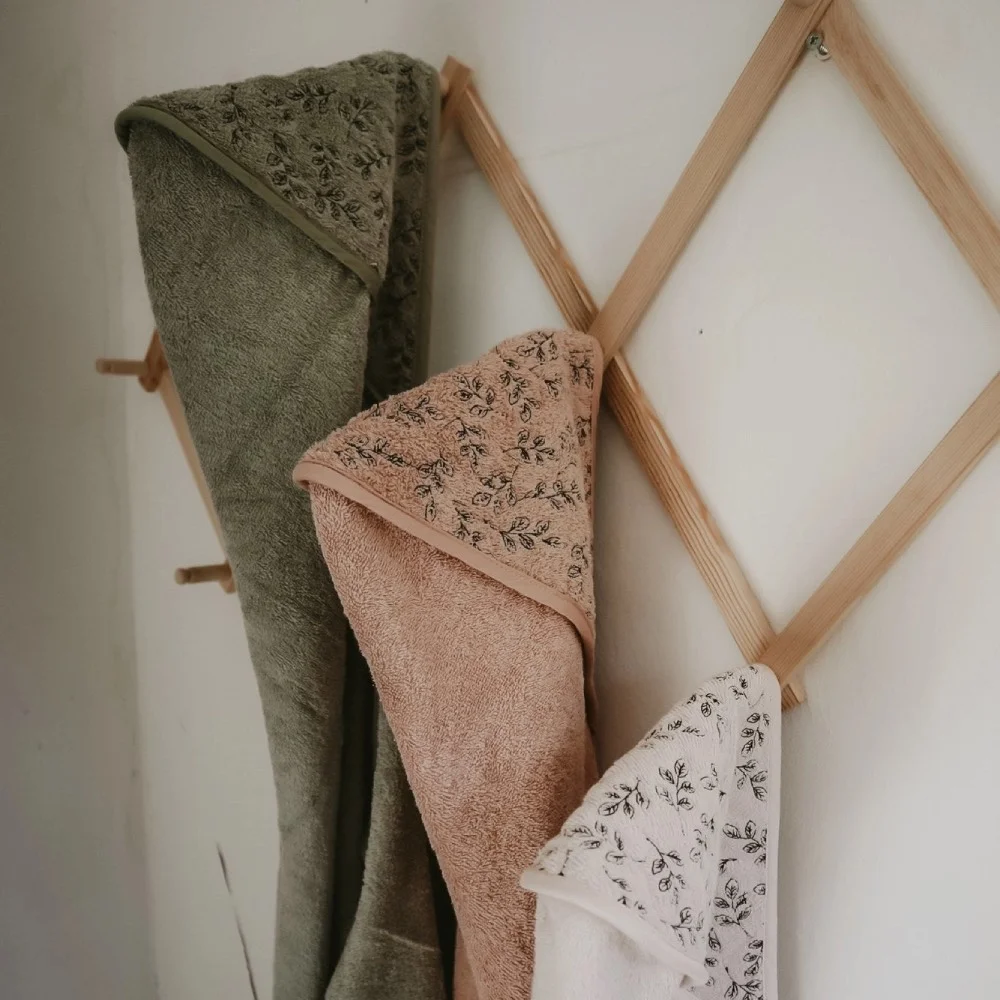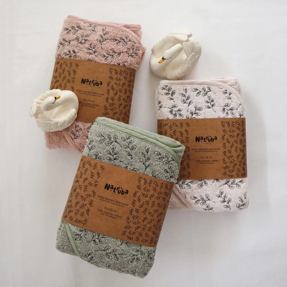 Natruba Πετσέτα Μπάνιου με Κουκούλα για Μωρά Powder | Κέντημα Φύλλο | 100% Βιολογικό Βαμβάκι