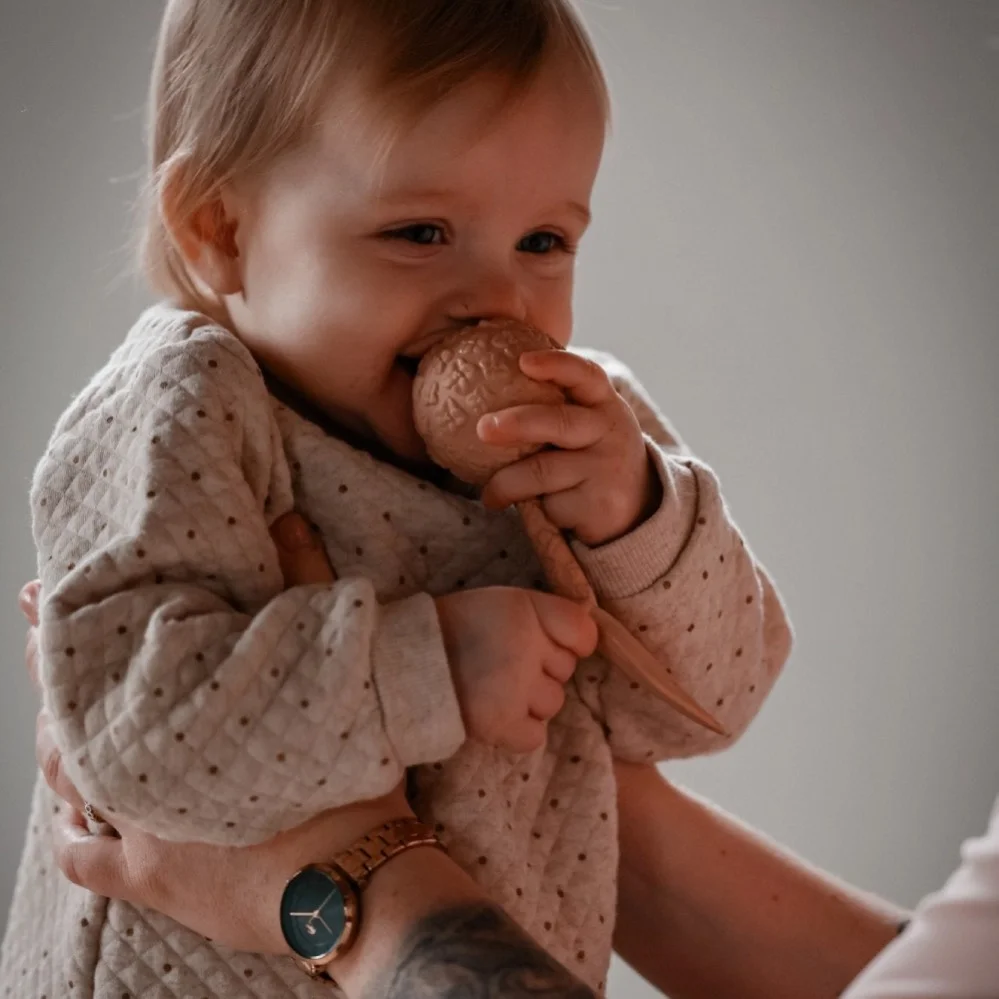 Ασφαλής για οδοντοφυΐα και αισθητηριακό παιχνίδι από 0+ μηνών. Περιλαμβάνει κουδουνάκι.