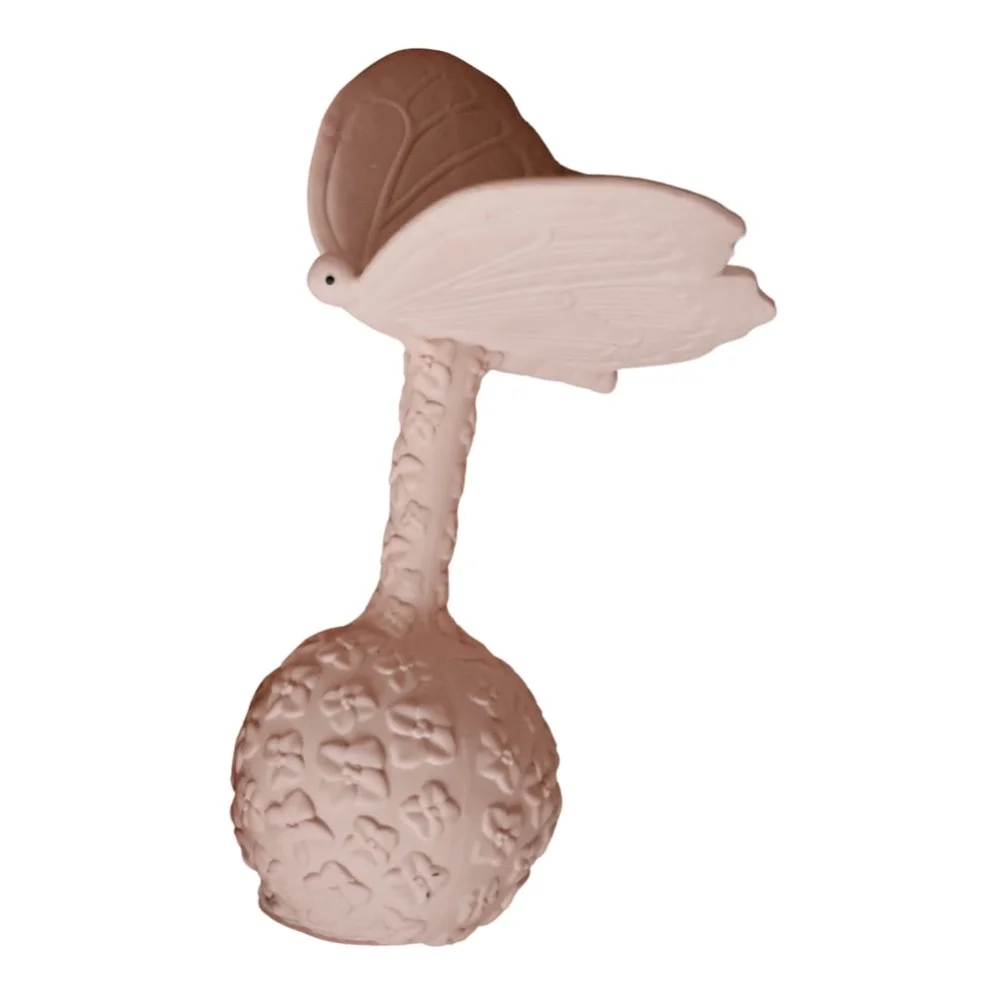 Χειροποίητη κουδουνίστρα Natruba Butterfly Rose από φυσικό καουτσούκ.