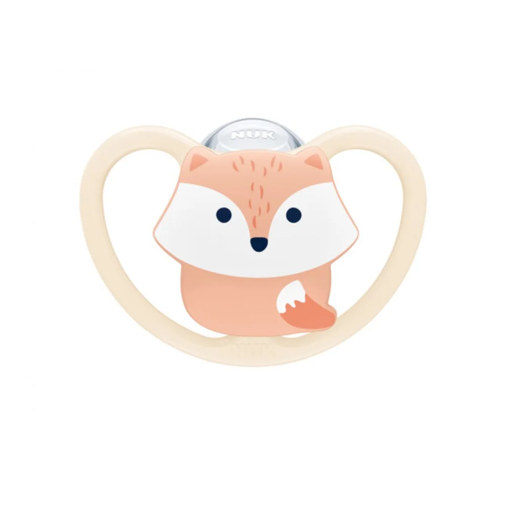 NUK Ορθοδοντική Πιπίλα Σιλικόνης για 0-6 μηνών Space με Θήκη Αλεπού
