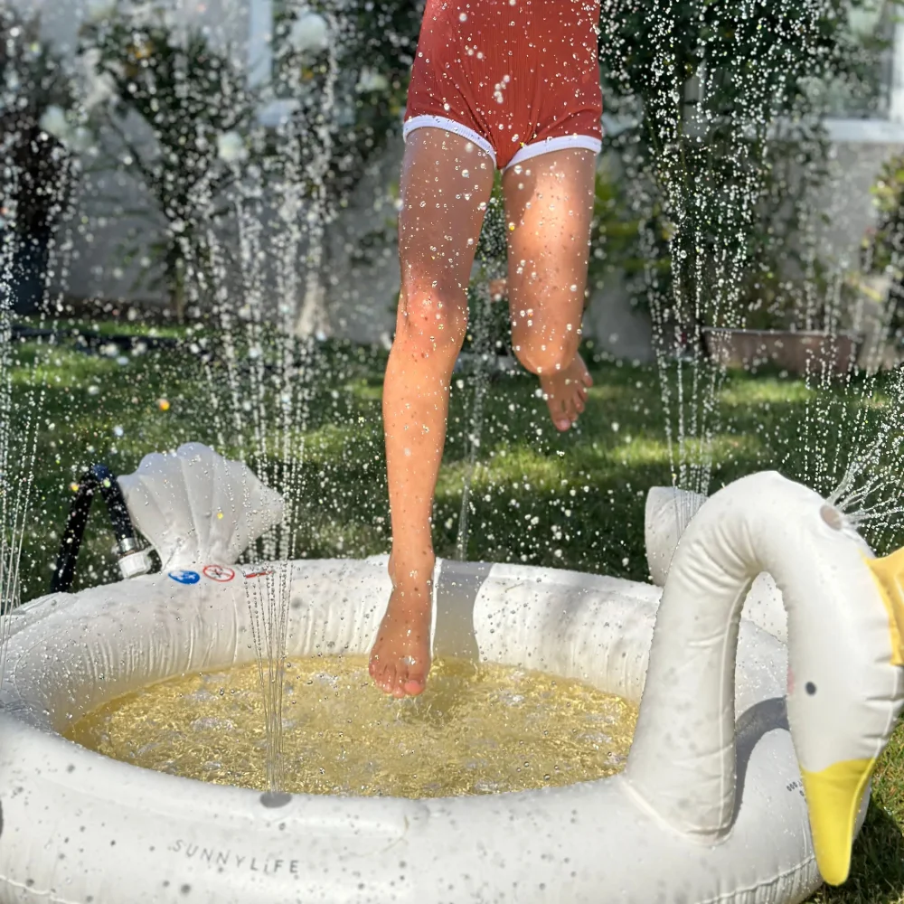 Η Princess Swan Kids Sprinkler Mat της SUNNYLiFE μετατρέπει την αυλή σας σε παραμυθένια παιδική πισίνα, με πριγκιπικό σχέδιο κύκνου, καλοκαιρινά χρώματα και ψεκασμό από όλες τις πλευρές για απόλυτη δροσιά.