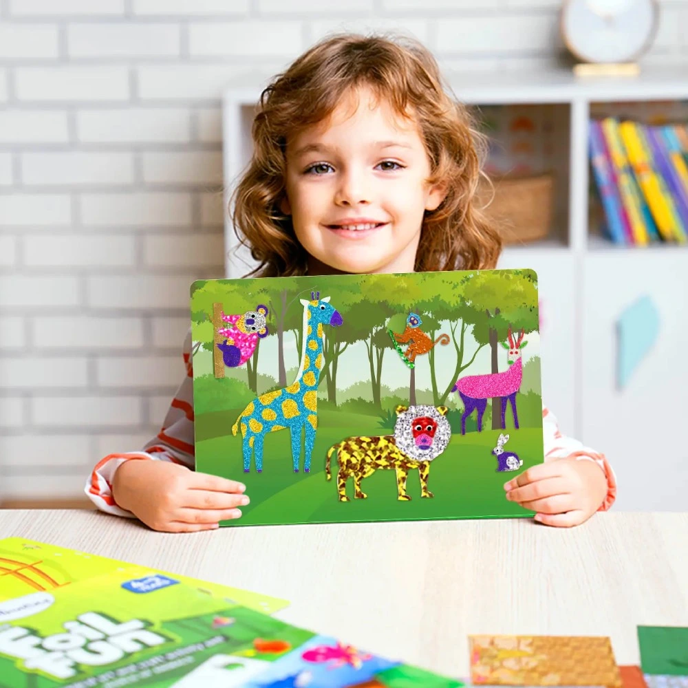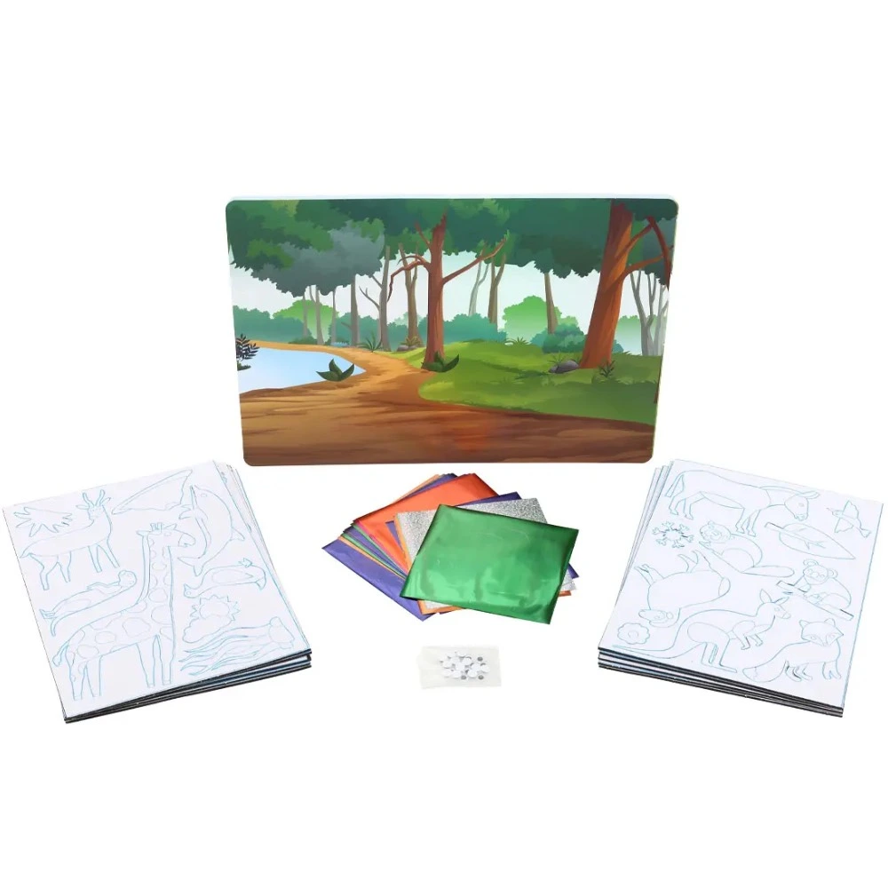 Τα παιδιά μπορούν να αφήσουν τη φαντασία τους να απογειωθεί, δημιουργώντας μοναδικές εικόνες από αλουμινόχαρτο με θέμα τον κόσμο των ζώων. Ιδανικό για ανάπτυξη δημιουργικότητας και λεπτής κινητικότητας.