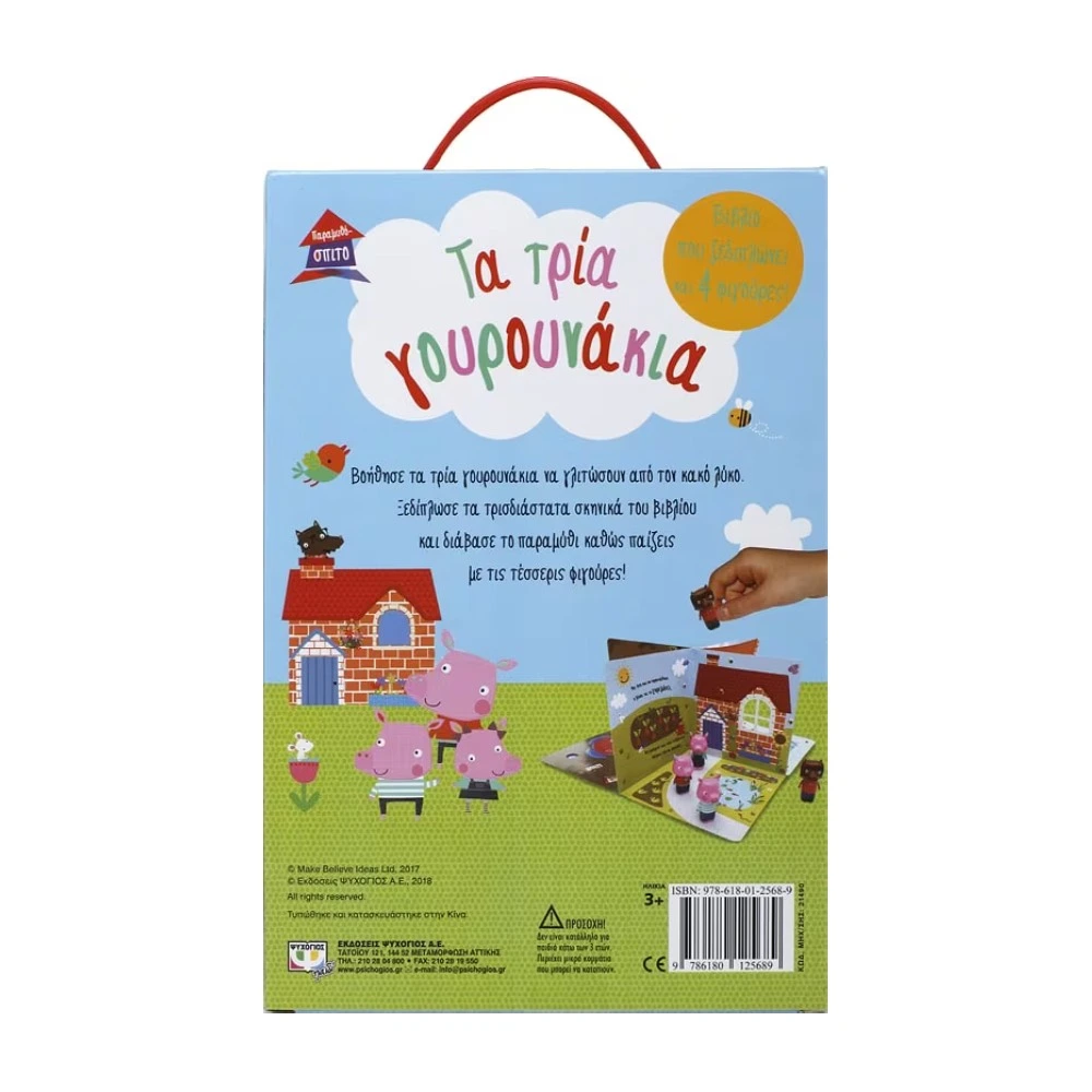 Βιβλιοπαιχνίδι με τρισδιάστατα σκηνικά και φιγούρες που ζωντανεύουν το κλασικό παραμύθι “Τα Τρία Γουρουνάκια”. Ιδανικό για παιδιά 0-4 ετών.