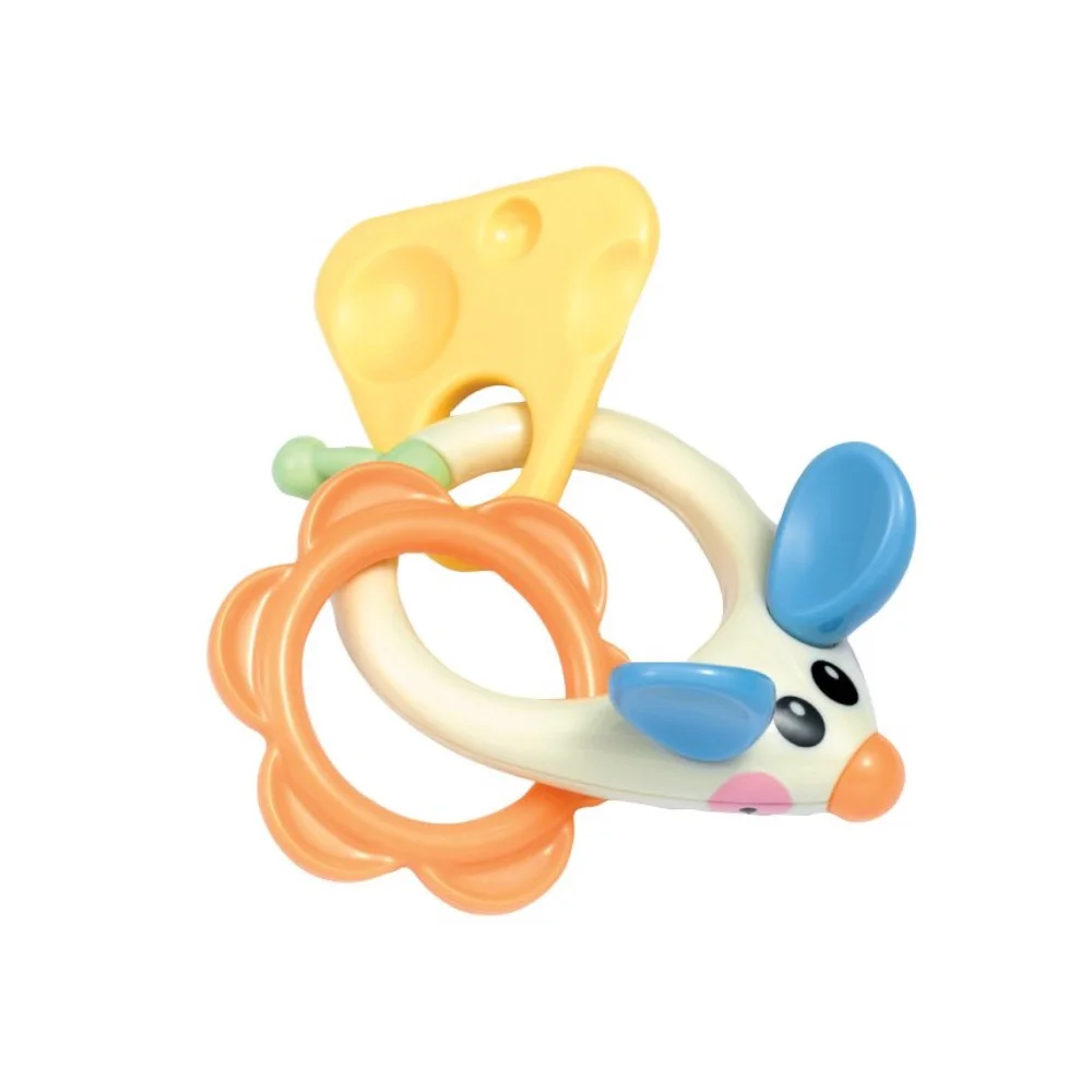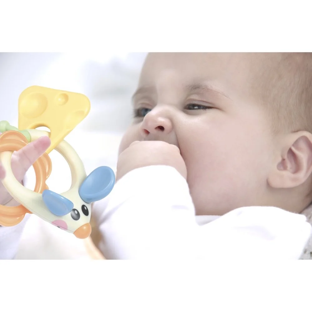Βρεφική κουδουνίστρα Tolo σε σχήμα ποντικιού με ήχους και παστέλ χρώματα. Εύκολη στη λαβή, ασφαλής για το στόμα, ιδανική για 3+ μηνών.