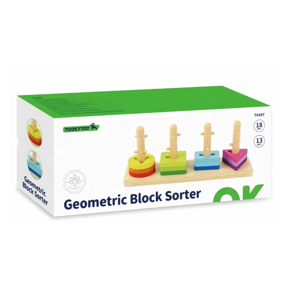 Ξύλινο παιχνίδι ταξινόμησης Tooky Toy με 13 γεωμετρικά σχήματα για στοίβαξη, αναγνώριση χρωμάτων και ανάπτυξη κινητικών δεξιοτήτων.