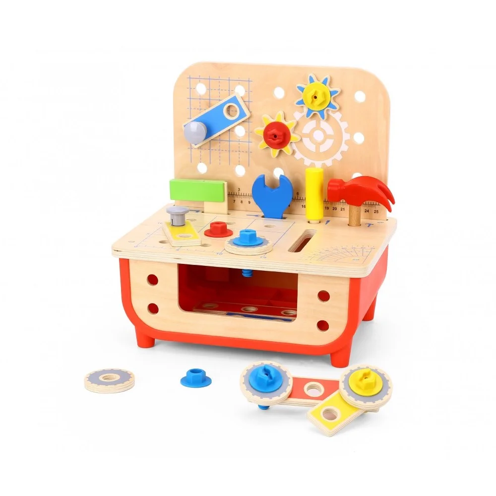Ξύλινος πάγκος εργαλείων με 31 τεμάχια για δημιουργικό παιχνίδι ρόλων.