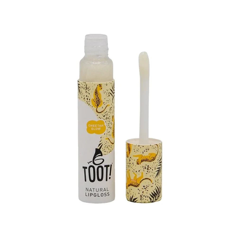 TOOT! φυσικό lip gloss Cheetah Glow, διάφανο με χρυσές λάμψεις. Vegan, cruelty-free, ιδανικό για παιδιά και εφήβους.